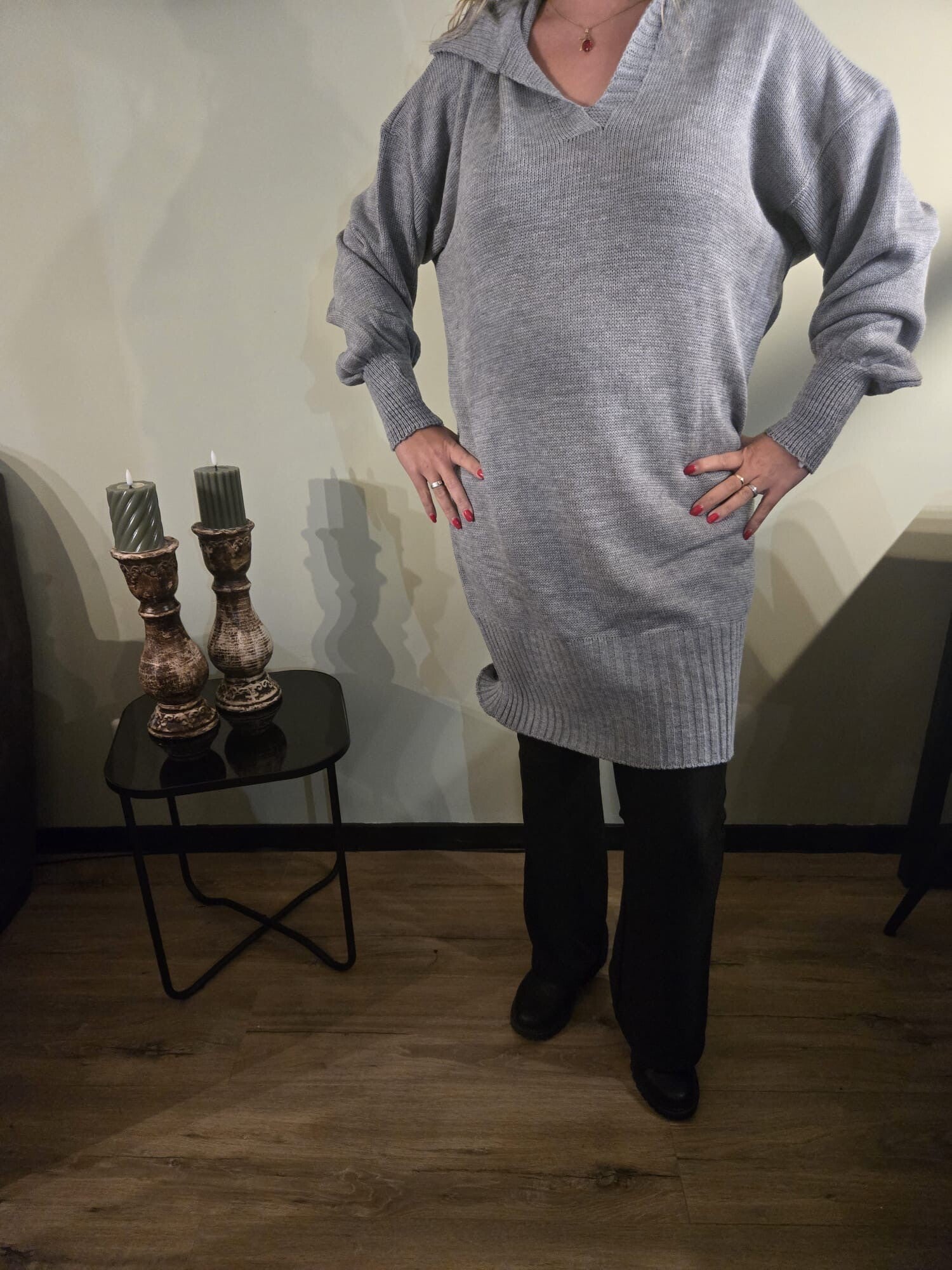 Gebreide trui V hals grijs